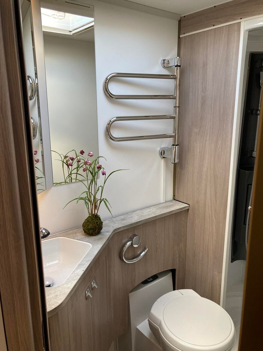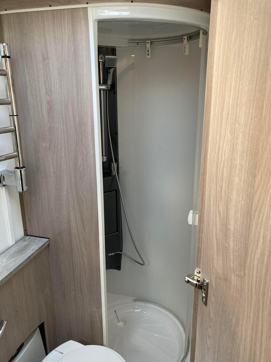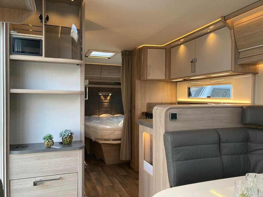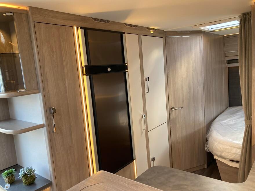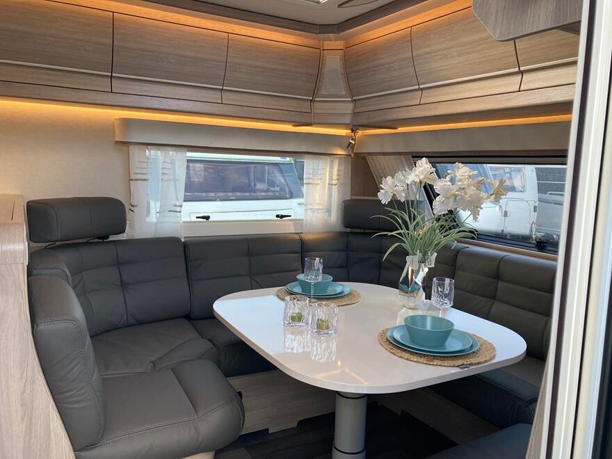 TILBUD SPAR 66.185 NU 499.995.- ——————————————————- Kabe Royal 600 D CXL KS – 2023. Super flot vogn i en helt ny indretning med stor vinkelsiddegruppe i forenden med vinkel hvor man kan trække fladskærm op. Herefter vinkelkøkken med højkøleskab overfor klædeskab. I bagenden soveafdeling med dobbeltseng og toiletrum med brusekabine. Grundpris 551.900.- Denne vogn er bestilt med Hollywood skindpolster 14.280.- Pris ialt 566.180.-