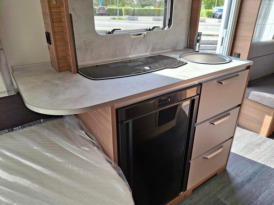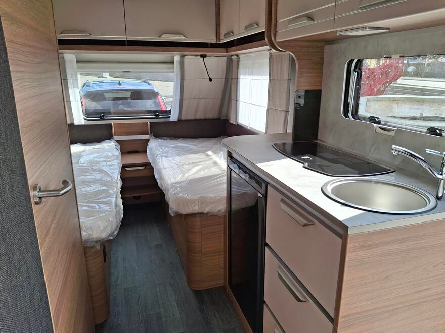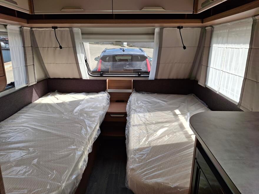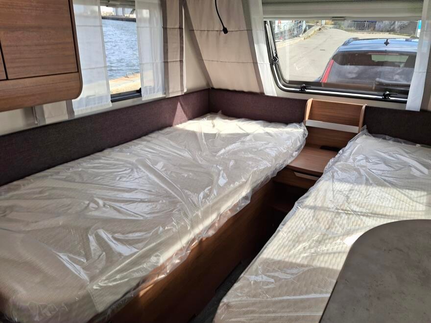 EFTERÅRS TILBUD SPAR 20 .555 NU 219.995.- , ved køb senest 30.11.25 Knaus Sport 460 EU – 2024 Super flot rejsevogn rejsevogn for to med indrettet med soveafdeling i fronten med to enkeltsenge Herefter køkken overfor toiletrum. I bagenden komfortabel siddegruppe. Grundpris 221.900.- Denne vogn er specialudstyret med designpakke 10.910, oplukkeligt vindue i fronten 4.410.- og active Rock polster 3.330 – Pris ialt 240.550.-