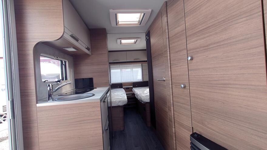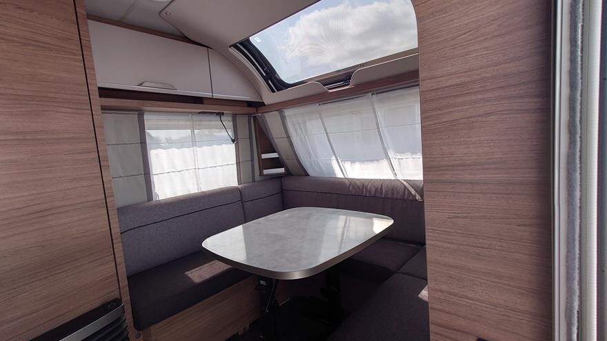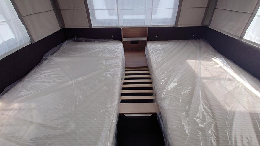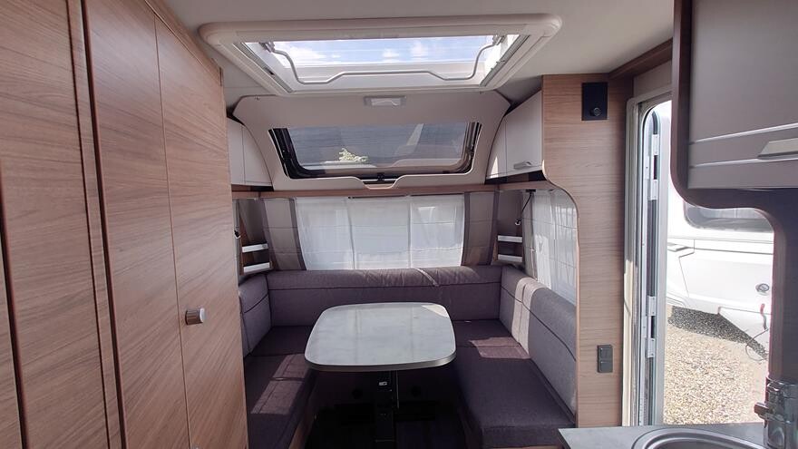 EFTERÅRSTILBUD – Spar 21.175 NU 234.995. ved køb senest 30.11.25 —————————————————— Knaus Sport 540 EU – 2023 model -Velkommen inden for i denne super flotte rejsevogn fra Knaus. Vognen er indrettet med rundsiddegruppe i forenden under det flotte panoramatag. Herefter køkken overfor toiletrum og klædeskab. I bagenden dejligt soveværelse med to enkeltsenge.. Grundpris 245.800.- Denne vogn ert ekstra udstyret med ekstra serviceklap i fronten 2.490, oplukkeligt vindue i bagenden 4.4.80 og active Rock polster 3.400.- Pris ialt 256.170.-. Husk du altid kan klikke ind på Knaus konfigurator og se de mange muligheder for ekstra udstyr.