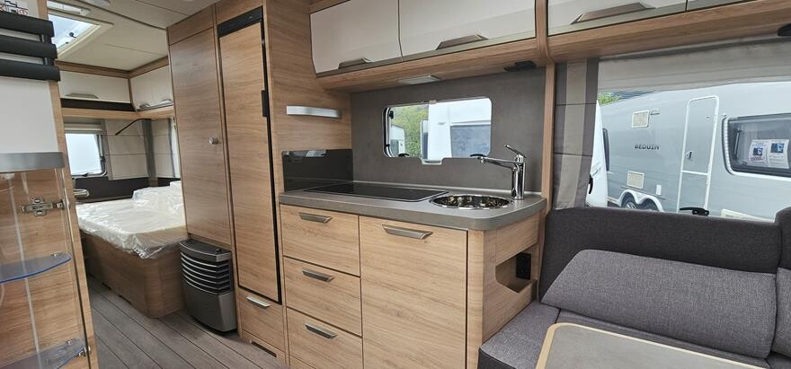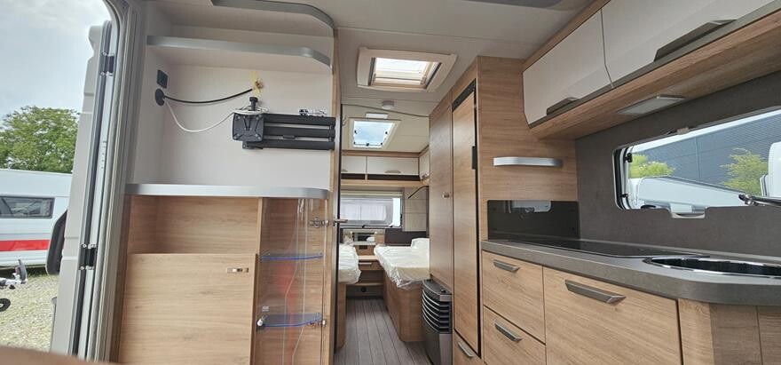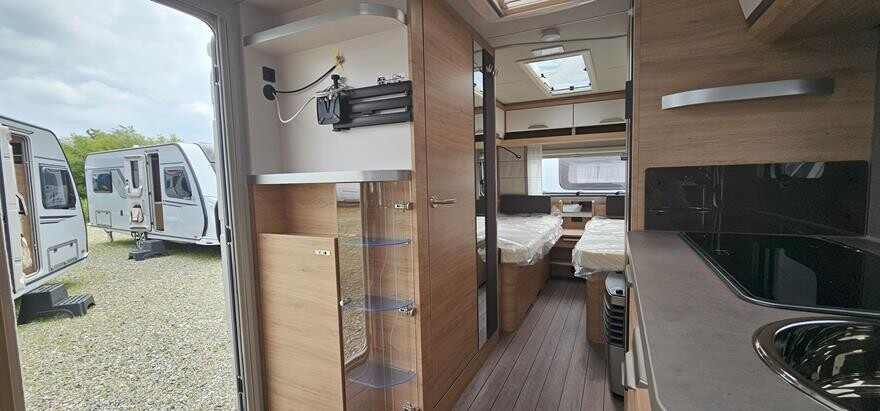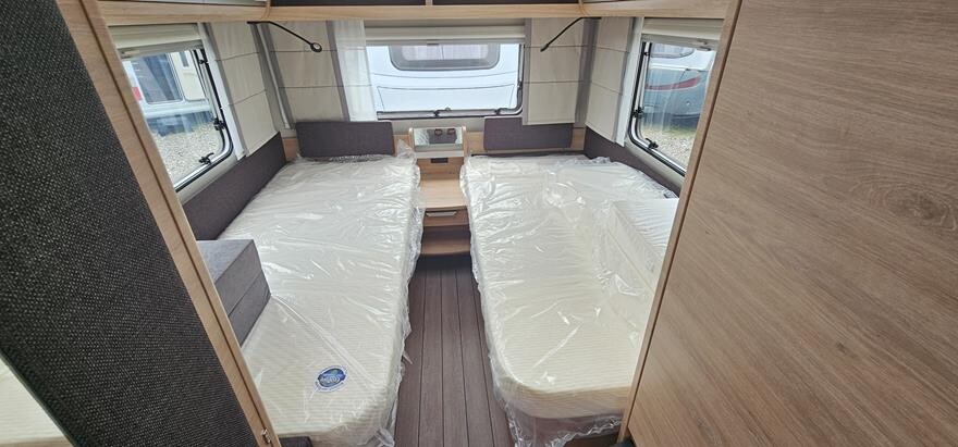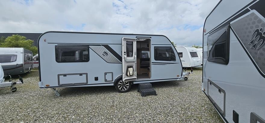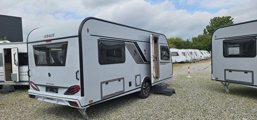 Knaus Südwind 540 EU – 2025 – Super lækker vogn indrettet med rundsiddegruppe under det flotte skyroof i forenden. Herefter godt køkken med højkøleskab og klædeskab overfor toiletrum. I bagenden soveafdeling med to enkeltsenge med lameludtræk imellem. Grundpris 281.800,. Bestilt med ekstra serviceklap 2.420, oplukkeligt vindue bag 4.480. Panorama tagluge 130×45 cm bag 5.170, flexibel bordforskydning 1.620 og citybyvand 3.030- Ialt 298.520.- Alle ” 60 Years ” jubilæums er udstyret med bl.a. 17 Alufælge, Premium dør, myggenetsdør, Heki tagluge, glatte sideplader, vandfilter, udvendig kombistik, Ambientebelysning, tv-holder,Knaus Bluetooth Soundsystem, elektrisk gulvvarme, mobilanlæg 12 volt ( excl. batteri ), Alko stabiliform støtteben, næsehjul med vægt, Alko AAA Premuim bremser m.m.