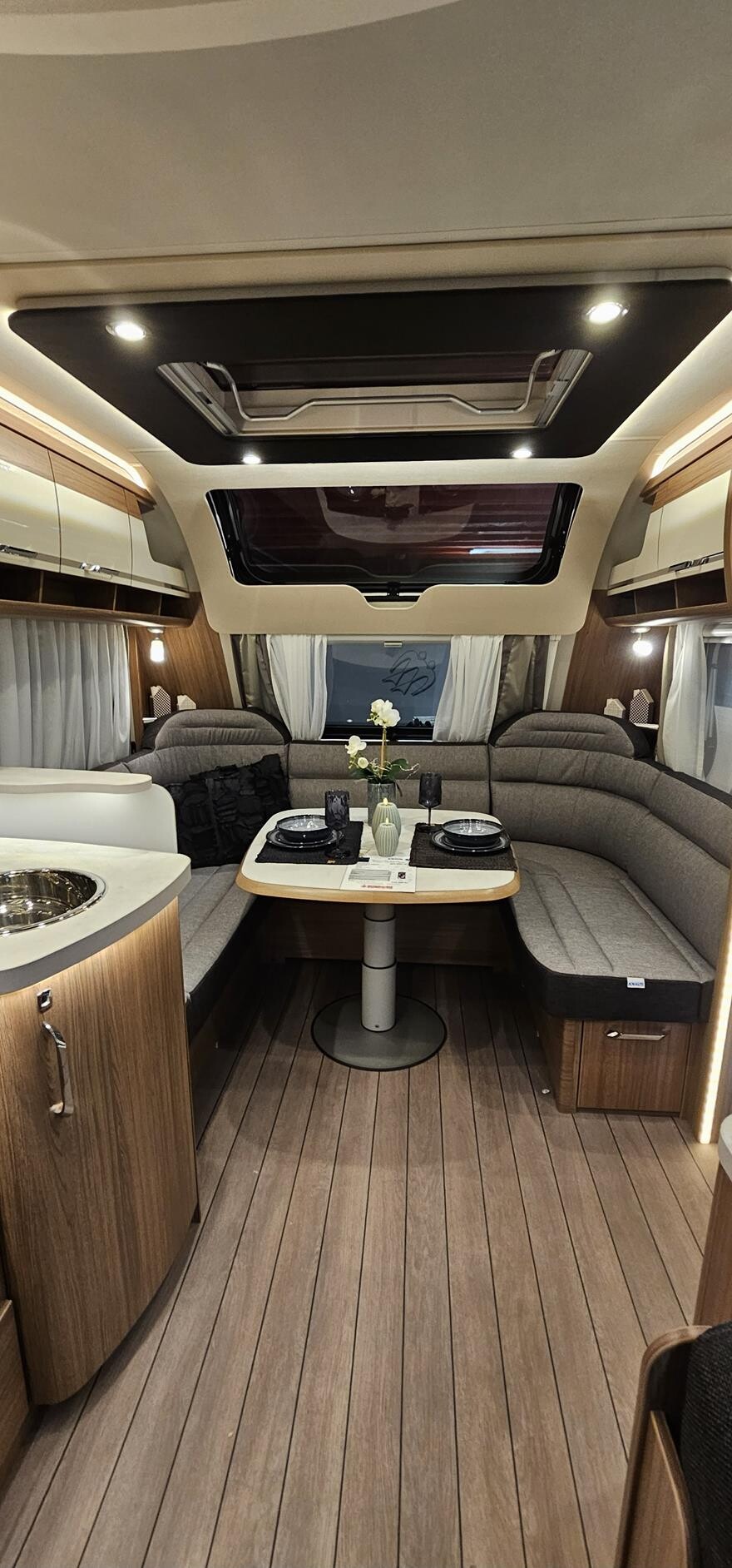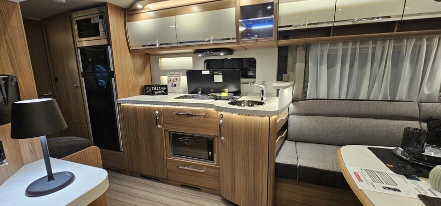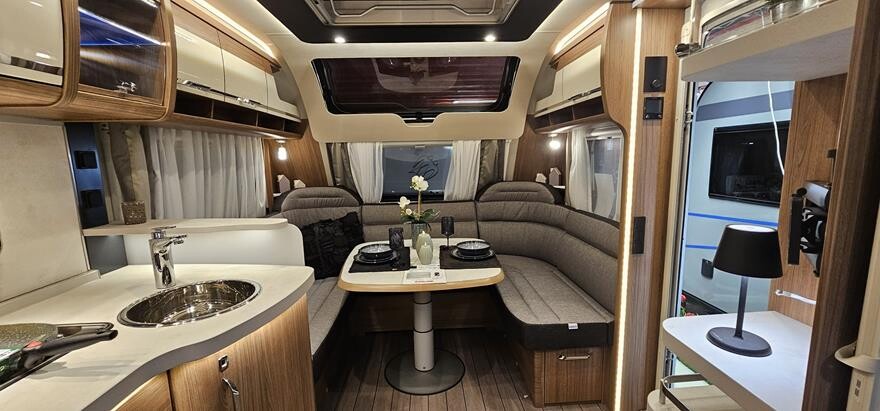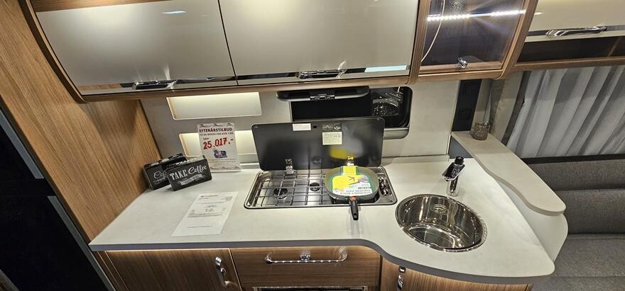 EFTERÅRSTILBUD – Få mover for Kr 1.- Spar 25.017.- Denne vogn leveres incl. Powr Evolution Fuldautomatisk 2w caravan mover og kpl. 12 volt anlæg for Kr: 1.- —————————————————— Knaus Scandinavian Selection 650 UDF – 2025. Super lækker vintervogn med Alde centralvarme, vandbåren gulvvarme m.m. Dejlig rummelig indretning med rundsiddegruppe under det flotte skyroof i forenden. Herefter godt køkken overfor overfor siddegruppe med klapkøje over. I bagenden soveafdeling med komfortabel dobbeltseng og toilet/bruserum . Grundpris 20245 383.000.200 Denne vogn er ekstra udstyret med 2500 kg aksel 5.220, Tagreling med stige 7.780, ekstra serviceklap 2.420, Knas komfortsenge 6.000, Active Rock polster 3.330, gasbageovn 6.910, Truma doukontrol 4.030, fjernbetjening til Truma gasflaskeomskifter 1.550, udvendig gastillutning 2.110, City-byvand 3.030 Pris ialt 425.380.-.