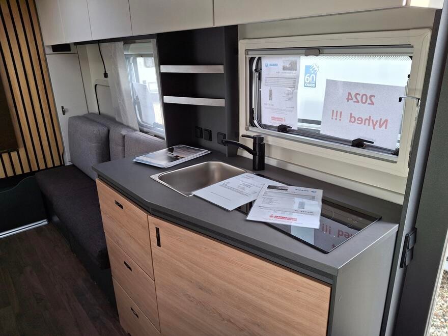EFTERÅRSTILBUD – Spar 22.535.- NU 254.995.- ved køb senest 30.11.25 —————————————————— Nyhed ” Knaus Yaseo 500 DK ” SKAL OPLEVES O:) Minimalt areal til maksimal fornøjelse YASEO redefinerer størrelse! Den giver dig samme komfort og plads som en konventionel campingvogn men på ultrakompakte mål takket være de multifunktionelle elementer og det variable grundrids Gasfri teknik som derhjemme Er alt eldrevet? YASEO leveres som standard med gasfrie elapparater, som for eksempel en induktionskogeplader, et klimaanlæg og et køleskab. Takket være den standardmæssige E.POWER teknologi kan alle apparater forsynes med landestrøm eller med strøm fra et trækkøretøj med V2L-teknik.. Grundpris 237.100 Denne vogn er ekstra udstyret med Design pakke 10.910, Pluspakke 8.560 , Transport pakke 8.560, 1800 kg aksel 5.220, Lounge hjørne der kan omdannes til dobbeltseng 3.850 og Active Rock polster 3.330. Pris Ialt 277.530.-