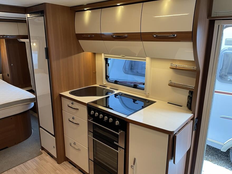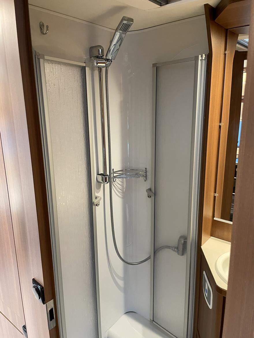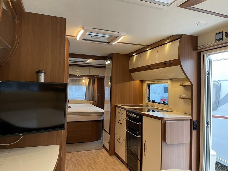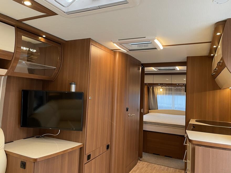 LMC Exquisit Vip 595 D – 2018 Flot LMC vintervogn med Alde centralvarme og vandbåren gulvvarme. Vognen er indrettet med sofagruppe og tv-bord i bagenden. Herefter funktionelt køkken med komfur, gasbageovn og sort slimline køleskab. Overfor klædeskab og toiletrum med brusemulighed. I forenden lækker soveafdeling med midter-stillet dobbeltseng. Vognen er udstyret med Powrwheel automatisk mover, Truma Duecontrol, 250 W solcelle og inverter. Der medfølger et Isabella Winter fortelt. Kom forbi og se denne flotte velholdte LMC Exquisit Vip. Vognen sælges for en kunde.