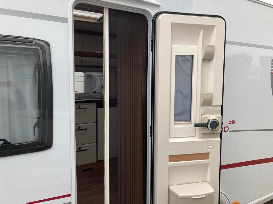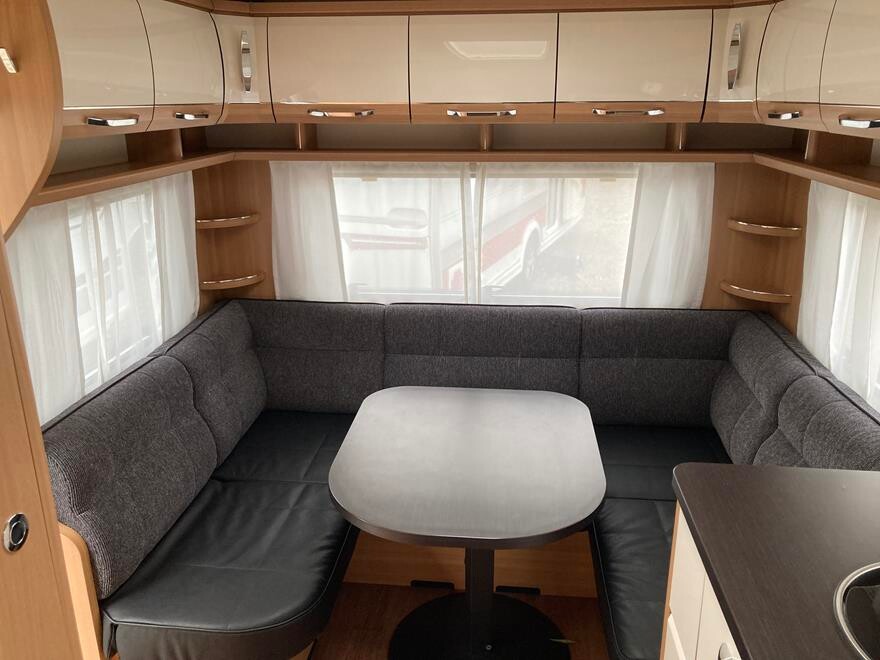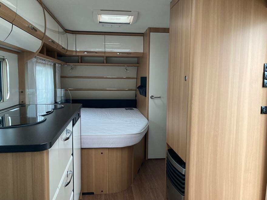 EFTERÅRSTILBUD SPAR 10.000,- Kom inden for i denne meget velholdte lille rejsevogn med dobbeltseng. Vognen er udstyret med en Truma SX manuel mover. Vognen er indrettet med en hyggelig siddegruppe i bagenden betrukket med sort læderlook, i midten af vognen finder du et køkkenet og overfor dette er klædeskabet, forrest i vognen er soveafdelingen, hvor du finder en stor fransk dobbeltseng, ved siden af sengen er toiletrummet med særskilt håndvask ved siden af. Der medfølger et Ventura fortelt. Vognen står meget flot og velholdt.