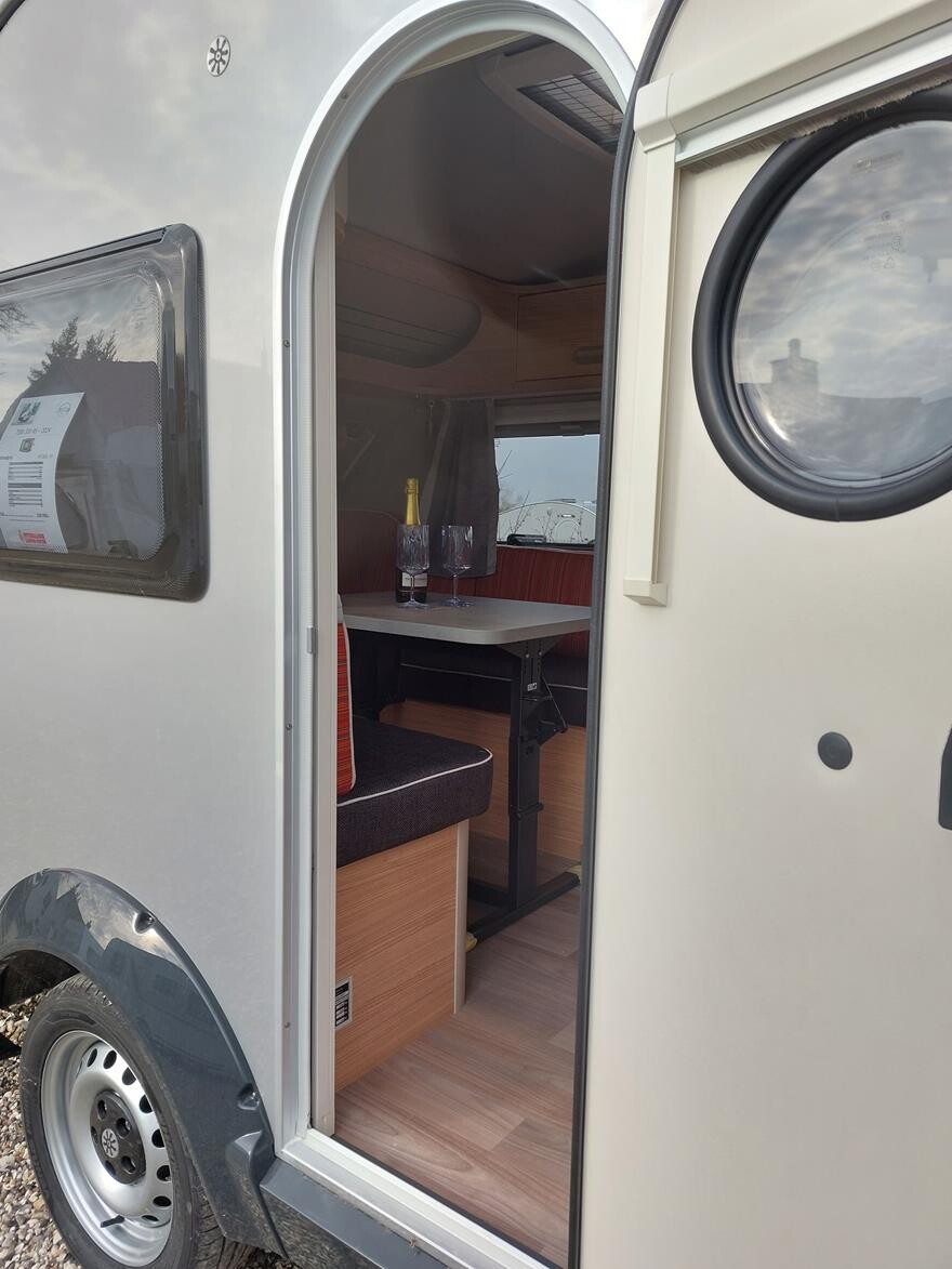 EFTERÅRSTILBUD SPAR 11.092 NU 148.888.- ved køb senest 30.11.25 ——————————————————– —————————————————- En super rejsevogn til det aktive par. Fabriksny T@b 320 RS – 2024 i super flot dråbeformet look . Vognen er indrettet med rundsiddegruppe i bagenden med skabe over. Rundsiddegruppen omdannes let til en stor dobbeltseng på 175×200. I forenden klædeskab og fumktionelt køkken med komfur og køleskab. Grundpris 147.600 Denne vogn er ekstraudstyret med serviceklappe 1210, 1000 kg totalvægt 5.220, myggenetsdør 2.430 og stabilisator 3.520 . Ialt 159.980.- Obs! Kan godt indregistreres til en totalvægt på mindre end 1000 kg.