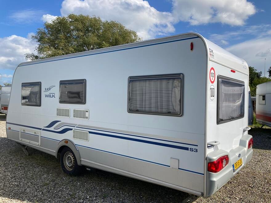Velholdt Wilk med dobbeltseng som er udstyret med både Enduro automatisk mover og et Ventura Pacific D250 fortelt. Vognen er indrettet med en rundsiddegruppe i bagenden, dernæst køkken med køleskab og gasbageovn, overfor dette er klædeskab og tv-holder til fladskærm, forrest i vognen er en god dobbeltseng, samt vask og toiletrum med brusebund.